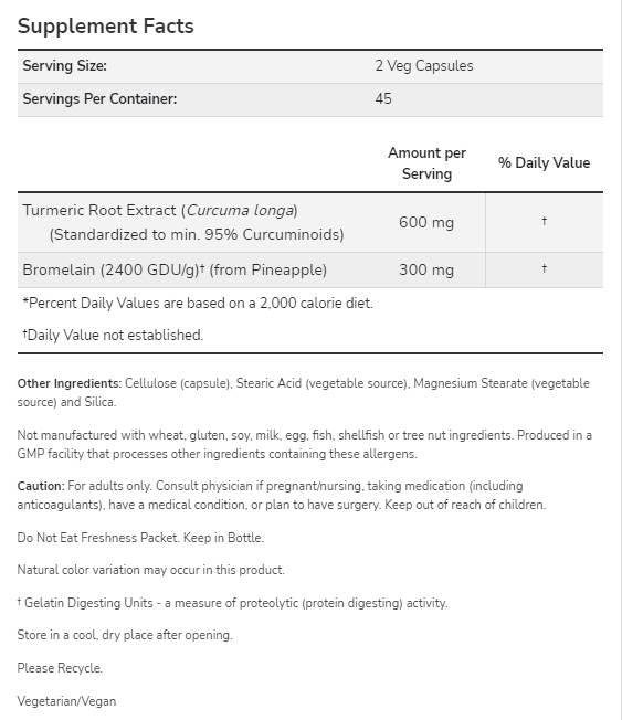 A bromelainnal, egy ananászból származó enzimmel végzett vizsgálatok azt mutatják, hogy fokozhatja a normális immunválaszt. NOW Foods Kurkuma &és bromelain Kurkumát és bromelaint kombinál az egészséges ízületi szövetek megőrzéséhez, amelyek alkalmanként túlzott terhelésnek vagy mindennapos használatnak vannak kitéve.