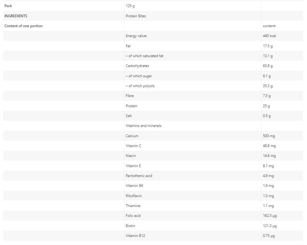 Protein Bites | L-karnitinnel, vitaminokkal és kalciummal - 125 gramm