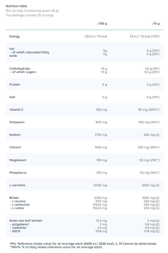 Elektrolitpor | BCAA-val, L-karnitinnal & Zöld tea - 320 gramm