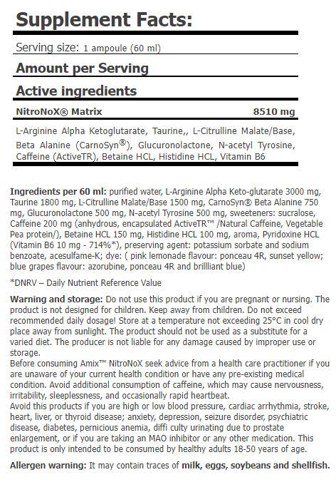 Előnyei AMIX Nitro Nox ® Shot/60 ml