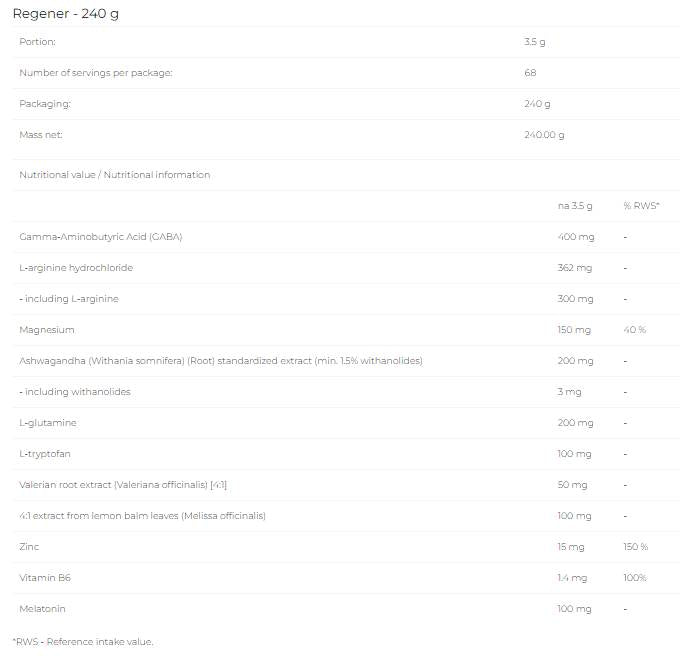 A REGENER alkalmas fizikailag aktív emberek számára, mentes a véletlenszerű adalékanyagoktól és töltőanyagoktól, így tiszta és hatékony formulát biztosít a regenerálódáshoz.