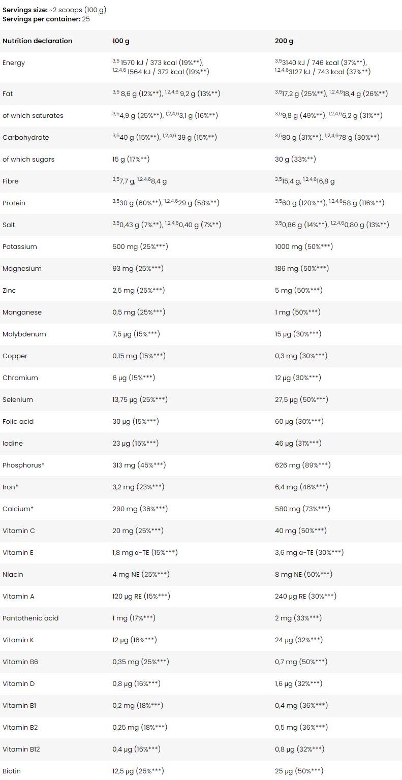 Rendkívül egyszerűen bevehető - csak keverjen el körülbelül 100 g (kb. 2 adagolókanál) port 350 ml vízzel. A terméket naponta 1-2 alkalommal használhatja kiegészítőként a napi rutinja részeként. Tanulmányok kimutatták, hogy az étkezések minőségi táplálékkiegészítőkkel való helyettesítése izomtömeg növekedéséhez és a fizikai teljesítmény javulásához vezethet.