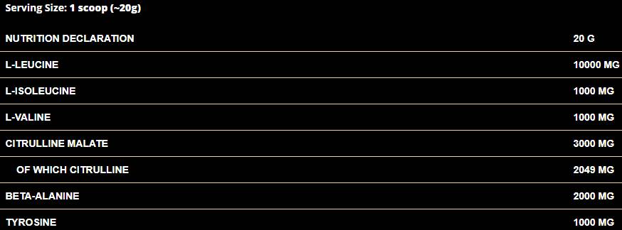 Ez a táplálékkiegészítő nemcsak a regenerálódást javítja, hanem a speciálisan válogatott összetevőknek köszönhetően támogatja az anabolikus folyamatokat is. A citrullin és a béta-alanin keveréke jobb pumpálást és fokozott teljesítményt biztosít edzés közben. A tirozin viszont fontos szerepet játszik az energiaszint és a koncentráció szabályozásában.