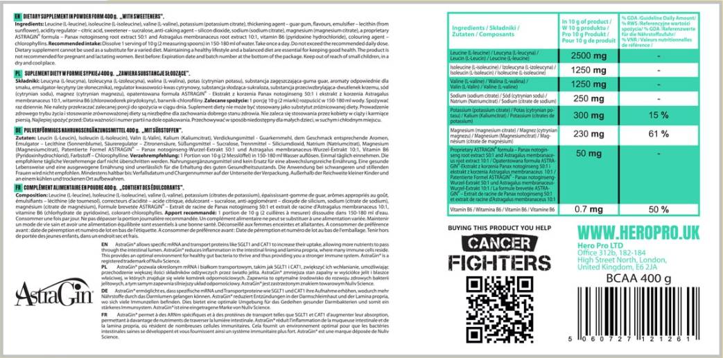 BCAA-k egyedülálló aminosavak, amelyek számos létfontosságú funkciót támogatnak. A szervezet azonban nem képes előállítani őket, élelmiszerek vagy táplálékkiegészítők formájában kell bevinni őket. Ha intenzíven edzel, elengedhetetlen a további beviteled. BCAA-k hogy megelőzzék a hiányukat. Köszönet érte BCAA Hiro.Lab, Hosszabb ideig edzhetsz az izmok általános támogatásának és a regenerálódási folyamat javulásának köszönhetően. Az edzés előtti szedéssel támogatod az izomrostok szintézisét. Ez az aminosav komplex segít a legjobb formádat hozni az intenzív edzések során, és sovány izomtömeget építeni.