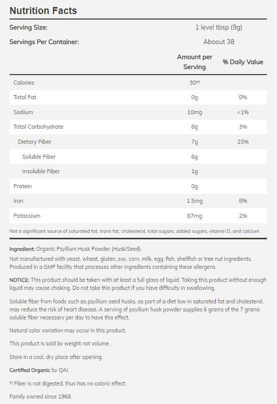 Élelmiszerekből származó oldható rost Az útifűmaghéjhoz hasonlóan, telített zsírban és koleszterinben szegény étrend részeként csökkentheti a szívbetegségek kockázatát. Egy adag útifűmaghéjpor 6 grammot biztosít a napi 7 gramm oldható rostból, amely ehhez a hatáshoz szükséges.
