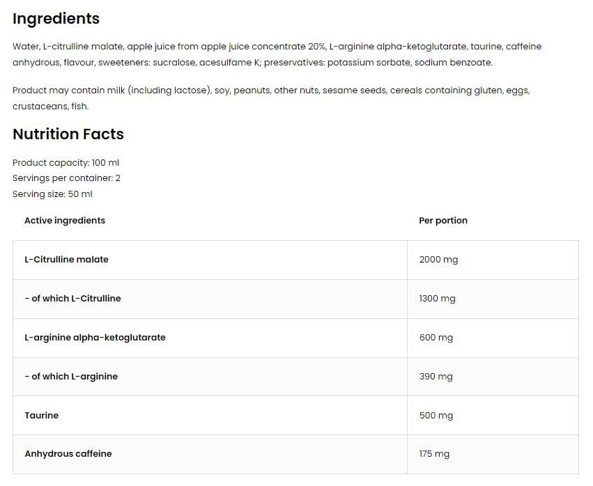 Pump edzés előtti lövés | béta-alanin nélkül - 100 ml
