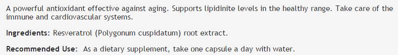 Összetevők: Resveratrol (Polygonum cuspidatum) gyökérkivonat.