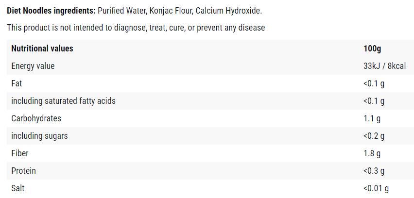 Az előnyök részletes ismertetése: A konjac diétás tészta ideális megoldás azok számára, akik csökkenteni szeretnék a kalóriabevitelüket anélkül, hogy feláldoznák az evés élvezetét. Rendkívül alacsony kalóriatartalmának (mindössze 8 kalória 100 grammonként) köszönhetően tökéletes a fogyókúrás diétákhoz. Ezek a tészták nemcsak gyakorlatilag szénhidrát- és cukormentesek, hanem élelmi rostforrást is jelentenek, ami segít hosszabb ideig fenntartani a teltségérzetet. Tudományos tanulmányok kimutatták, hogy az élelmi rostok segíthetnek az étvágy szabályozásában és a normál vércukorszint fenntartásában. A tészta egyszerű elkészítése miatt könnyen felhasználható különféle ételekben. Magában hordozzák az összetevők ízét, így sokoldalú termékké válnak a konyhában. Hozzávalók: tisztított víz, konjac liszt, kalcium-hidroxid. Hogyan kell használni: Öblítsd le a tésztát meleg víz alatt, majd főzd vagy pirítsd kb. 2-3 percig, és add közvetlenül az ételhez, amit készítesz. Jó étvágyat! Fontos figyelmeztetés: Használat előtt konzultáljon orvosával, ha bármilyen egészségügyi problémája vagy allergiája van. Mi vagyunk a folyékony táplálékkiegészítők piacvezető márkája, és büszkék vagyunk arra, hogy kiváló minőségű termékeket kínálunk, amelyek megfelelnek az Ön igényeinek. A legjobb vásárlási élmény a Feel You-nál: Áruházunkban egyedi árakat, gyors szállítást és kiváló ügyfélszolgálatot kínálunk. Válassza a Feel You-t vásárlásaihoz, és győződjön meg termékeink minőségéről. Ne felejtse el ellenőrizni a második termékfotó a teljes összetevőkért !