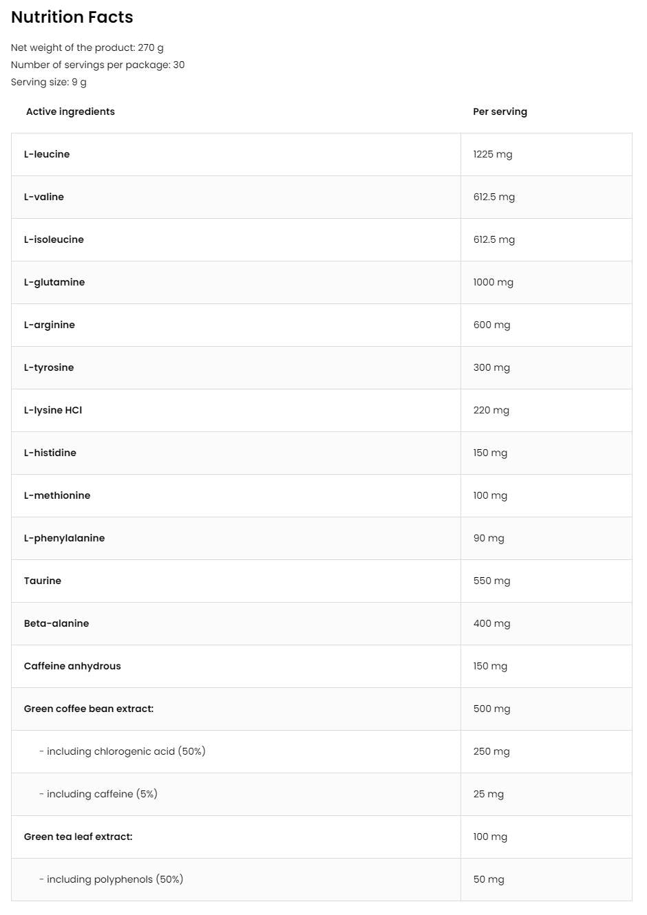 Tudományos kutatások kimutatták, hogy az esszenciális aminosavak fogyasztása javíthatja az izomszintézist és felgyorsíthatja a regenerálódási folyamatot, a koffein pedig a fizikai teljesítményre és a szellemi éberségre gyakorolt ​​pozitív hatásairól ismert.