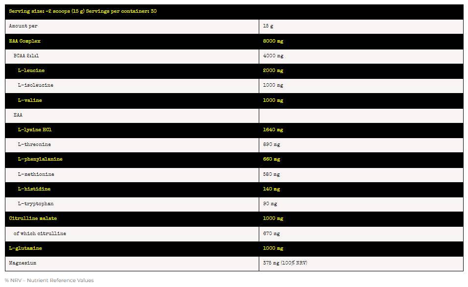 Nukleáris hatás | Teljes értékű aminosav formula - BCAA, EAA, glutamin, citrullin - 450 gramm