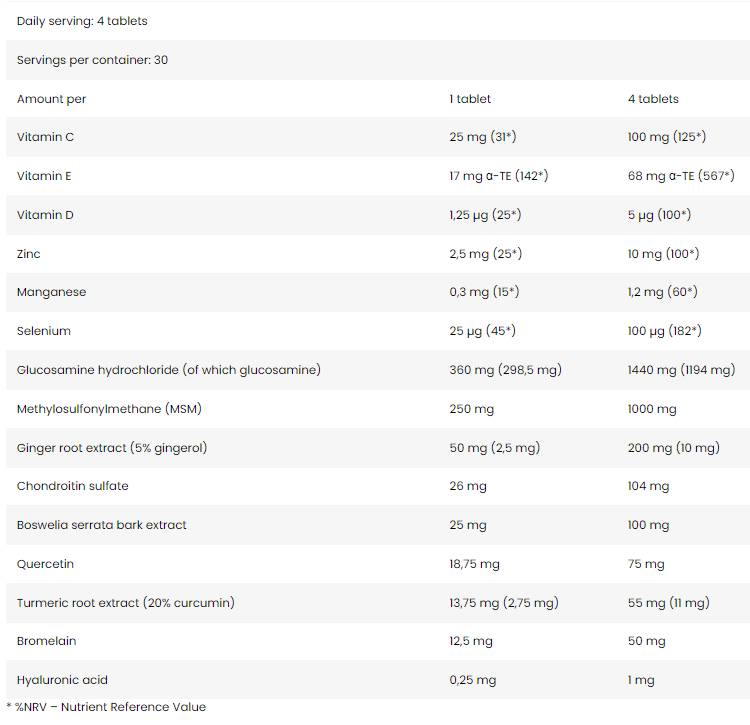 Ez a komplex kombinációs formula nemcsak az ízületek és porcok számára kulcsfontosságú és bevált összetevőket biztosítja, hanem a legjobb természetes kivonatokat is, bizonyítottan bioaktív összetevőkkel.