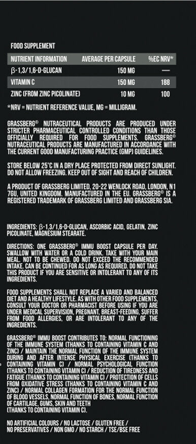 A GRASSBERG Immu Boost - Béta-glükánok/60 kapszula egy erős immunstimuláns, amely javítja az általános állapotot.