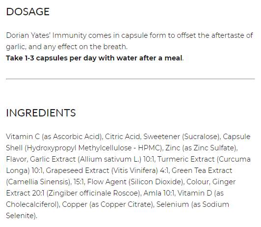 immunmoduláló összetevők, mint például az immunmoduláló D-vitamin , C-vitamin , cink , réz és szelén , valamint szuperélelmiszerek, mint például a legtisztább és legtermészetesebb formája fokhagyma , gyömbér és kurkuma kivonat, valamint további összetevők, beleértve a szőlőmag és zöld tea kivonat , amelyek szinergikusan működnek a fentiekkel, hogy a lehető maximális immunitást eredményezzék több fertőzéssel szemben.