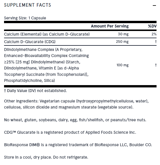 kalcium-d-glutarát, BioResponse DIM (szabadalmaztatott komplex, amely ≥25% diindolil-metánt tartalmaz)