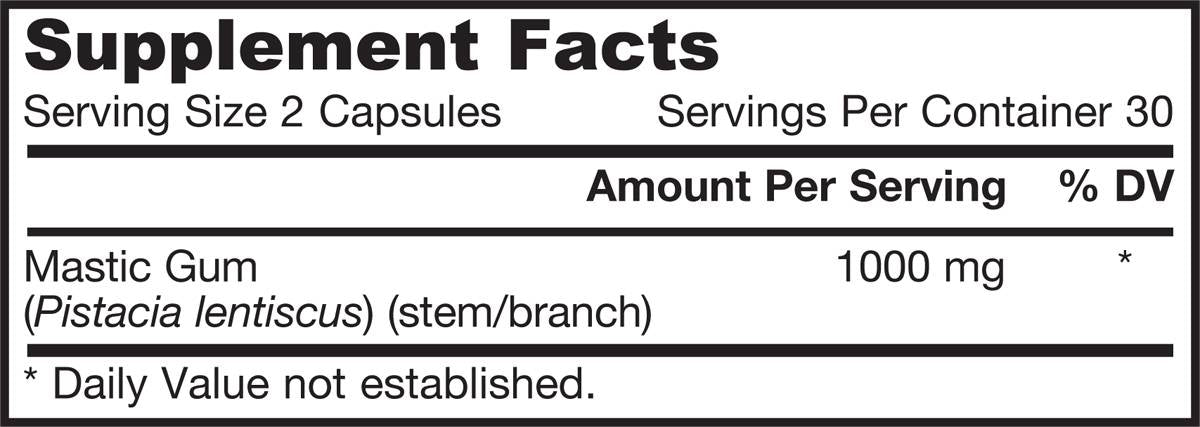 Masztix A rágógumi egy természetes termék, amelyet több mint 2500 éve használnak a bél-, gyomor- és máj egészségének elősegítésére. A kutatók azonban csak az 1980-as évek közepén erősítették meg a masztixgumi hatékonyságát a gyomor és a nyombél sejtjeinek és szöveteinek támogatásában. Napi egy gramm fogyasztása biztonságosnak és hatékonynak bizonyult a gyomor egészségének támogatásában. Antioxidáns tulajdonságai mellett a tudósok úgy vélik, hogy a masztixgumi jótékony hatással van a gyomorváladék kiegyensúlyozására is.