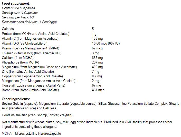 NOW® Csonterő mikrokristályos Hidroxiapatit (MCHA) – egy teljesen természetes összetevő, amely a csontok és fogak kristályos szerkezetét építi fel. MCHA A NOW® Bone Strength™ könnyen felszívódó ásványi anyagok forrása, mint például a kalcium és a foszfor, amelyek a csontok fő szerkezeti elemei. A NOW® Bone Strength™ nyomelemeket, valamint C-, D- és K-vitamint tartalmaz, amelyek részt vesznek a csontszövet építésében és megújulásában.