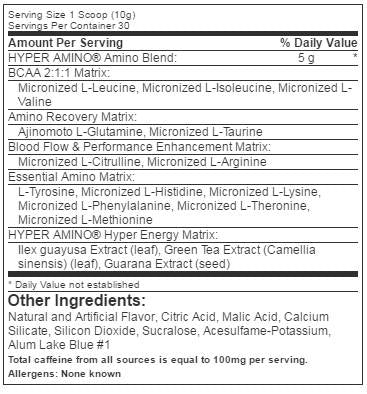 Útvonalterv: Keverjen össze 1 kanálnyit a HYPERAMINO-ból 4-10 unciával. (120-300 ml) víz, gyümölcslé vagy kedvenc italod. Keverd el egy pohárban vagy shakerben. Ne lépje túl a 3 adagot 24 órán belül.