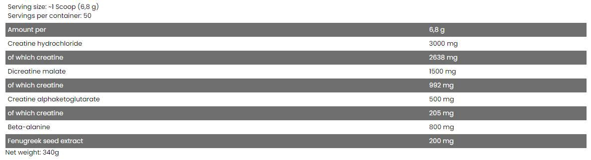 FA Nutrition CORE krém egy kreatin mátrix, amely a kreatin fejlett formáit tartalmazza, beleértve a kreatin-hidrokloridot ( HCl ). A formula a legtisztább formában lévő béta-alaninnal van dúsítva - szabadalmaztatott CarnoSyn® , ami csökkenti a tejsav felszabadulását az izmokban intenzív edzés során. A mátrix görögszéna kivonatot is tartalmaz, amelynek szerepe az inzulinérzékenység fokozása és a kreatin izomsejtekbe jutásának elősegítése. A kreatin minden formája CORE Crea tökéletesen adagolt és maximális hatást garantál minden edzés során!