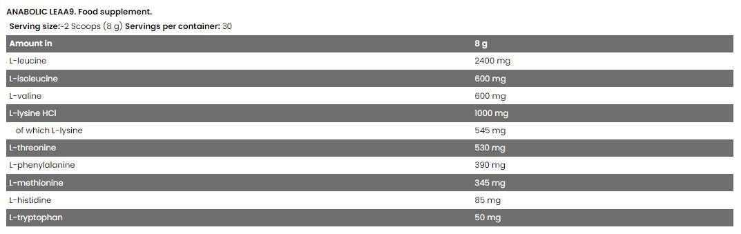 Xtreme Napalm LEAA 9 egy megnövelt L-leucin-tartalmú aminosav-komplex – amely kulcsfontosságú összetevő a fehérjeszintézis folyamatában. A leucin felelős az mTOR kináz aktiválásáért, amely olyan reakciókat indít el, amelyek hozzájárulnak az új izomfehérjék termeléséhez. Más EAA aminosavak fokozzák ezt a folyamatot, ami az izomtömeg-növekedés hatékonyságának növekedéséhez vezethet. Ez rendkívül fontos a fizikailag aktív emberek számára, akik az atlétikus testalkat kialakítására összpontosítanak.