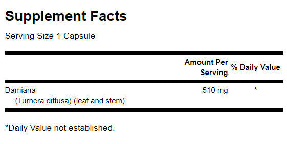 A Damiana vagy Turnera aphrodisiaca egy akár 1 m magasra is nyúló cserje, illatos, fűrészes, 10-25 mm-es levelekkel és apró sárga virágokkal. A növény gyógyászati ​​része a levelek, amelyeket nyáron, virágzáskor gyűjtenek. A Damiana Közép- és Dél-Amerikában nő. A növény szereti a forró és párás éghajlatot. Jelenleg csak Mexikóban és Dél-Texasban maradt fenn.