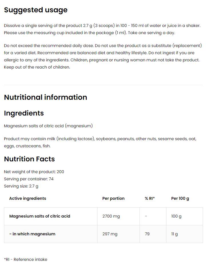 Figyelmeztetések: Vesebetegségben vagy hipermagnezémiában szenvedőknek nem ajánlott. Használat előtt konzultáljon orvosával, ha súlyos egészségügyi problémája van, vagy gyógyszereket szed.