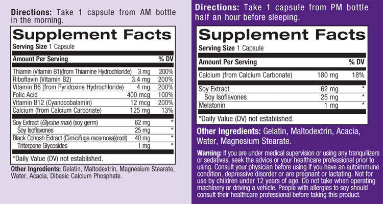 Úgy tervezték, hogy enyhítse a menopauzával járó tüneteket, Natrol A Complete Balance® Menopause AM/PM szóját, kalciumot, cimicifugát és vitaminokat tartalmaz. Speciálisan kifejlesztett formulájának köszönhetően segíthet csökkenteni a hőhullámokat, az éjszakai izzadást, a hangulatingadozásokat és a menopauza egyéb tüneteit.* Segíthet a menopauza előtti nők hormonális egyensúlyának fenntartásában is*.