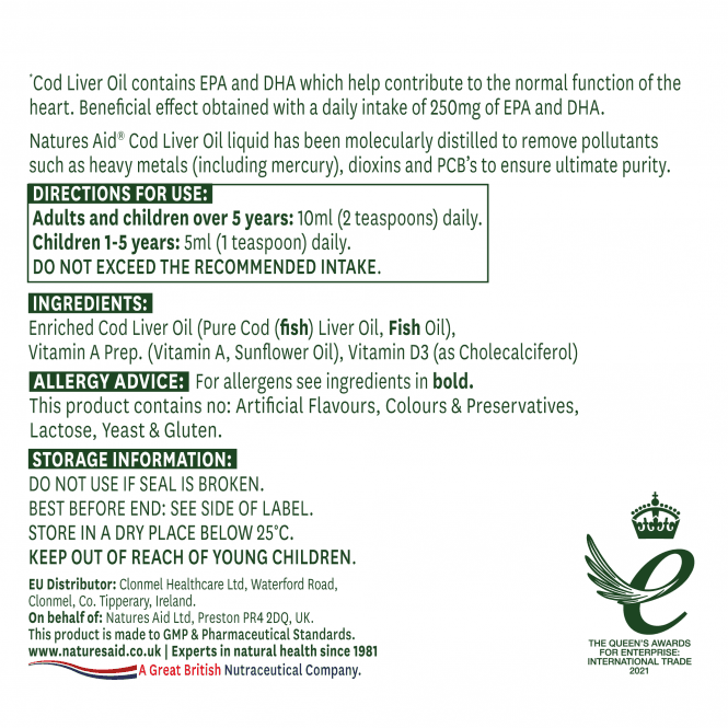 Natures Aid Tőkehalmájolaj folyékony formában: