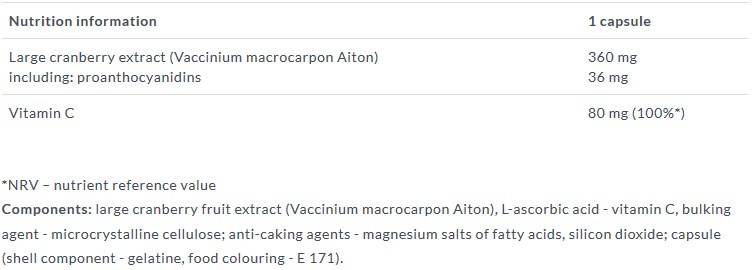 Egy innovatív étrend-kiegészítő, amely magas koncentrációjú (100:1 arányú) áfonya (Vaccinium macrocarpon) kivonatot tartalmaz, 10% proantocianidin (PAC) tartalomra standardizálva, plusz C-vitamint.