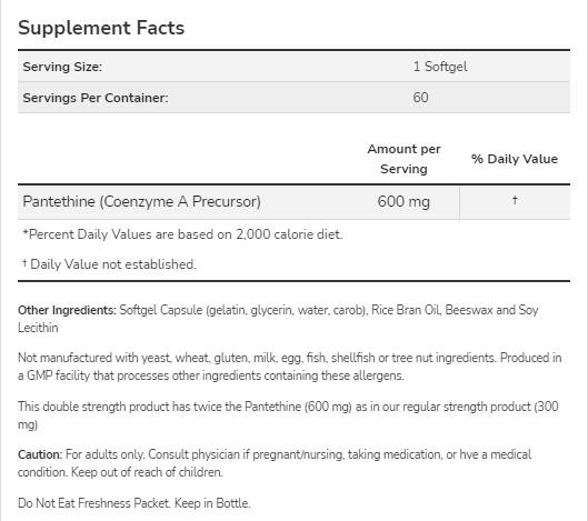 A termék hatóanyaga, a pantetin, fontos a sejtek megfelelő zsír- és energiaanyagcseréjéhez. Alapvető szerepet játszik a koenzim A termelésében, amely számos biokémiai reakcióhoz szükséges a szervezetben. A 600 mg-os pantetin szedése javíthatja az általános egészségi állapotot és az energiaszintet, valamint támogathatja a koleszterin és a trigliceridek egészséges egyensúlyát.