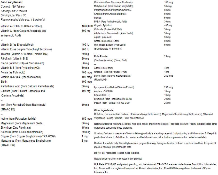 A NOW nem áll meg itt a sportolók számára tökéletes multivitamin komplex megalkotásában. A Special Two számos szuperélelmiszert is tartalmaz, mint például búzát, lucernát, spirulinát és chlorellát, valamint egy enzimkomplexet a táplálék jobb és teljesebb lebontása és felszívódása érdekében. A Special Two teljessé tételéhez fontos antioxidánsokat is tartalmaz, mint például luteint, likopint, alfa-liponsavat, zöld teát és máriatövist, hogy semlegesítsék a szabad gyököket és a legkedvezőbb feltételeket teremtsék a stresszes test regenerálódásához a fizikai edzés után.