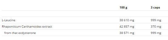Rendkívül hatékony, standardizált Leuzea kivonat (Raponticum carthamoides) , 90% ekdiszteront tartalmaz. Egyedülálló termék a hosszú távú anabolikus hatás fenntartására.