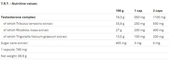 Tömörítés TRT A tesztoszteronszint növelésére szolgáló három legerősebb kivonatot ötvözi - Tribulus Terrestris, Rhodiola Rosea és Trigonella.