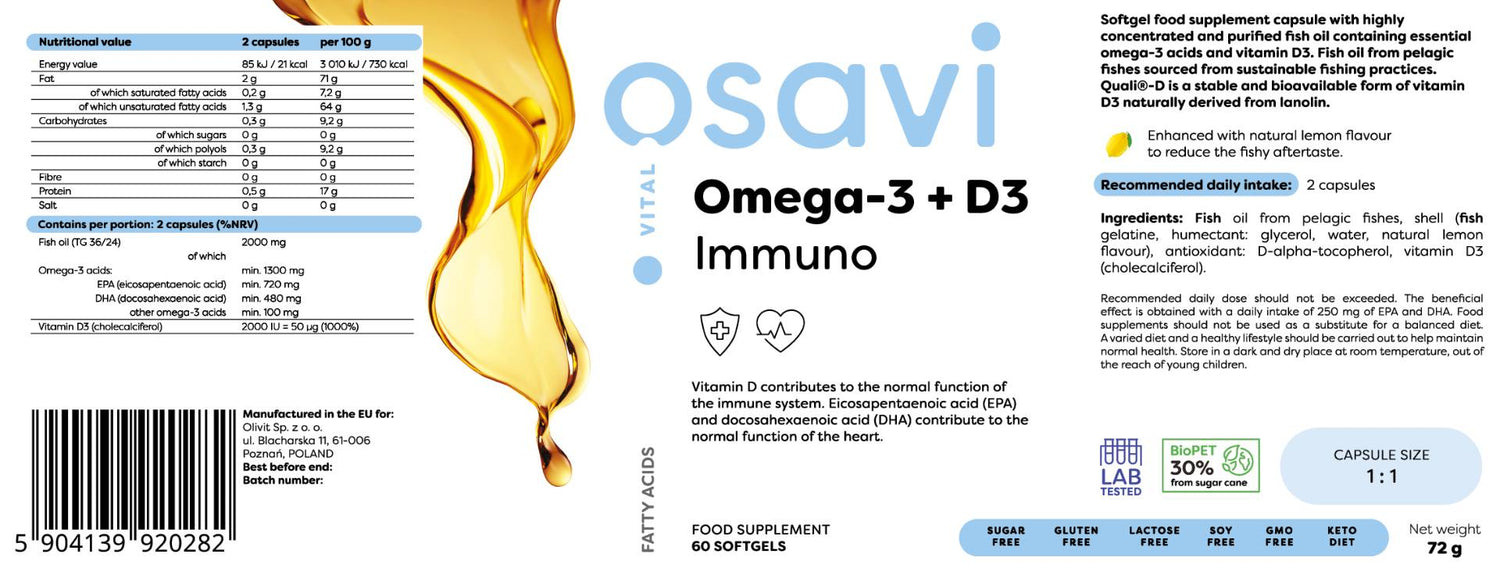 Osavi Az Omega-3 + D3 Immuno a következő tulajdonságokkal rendelkezik: