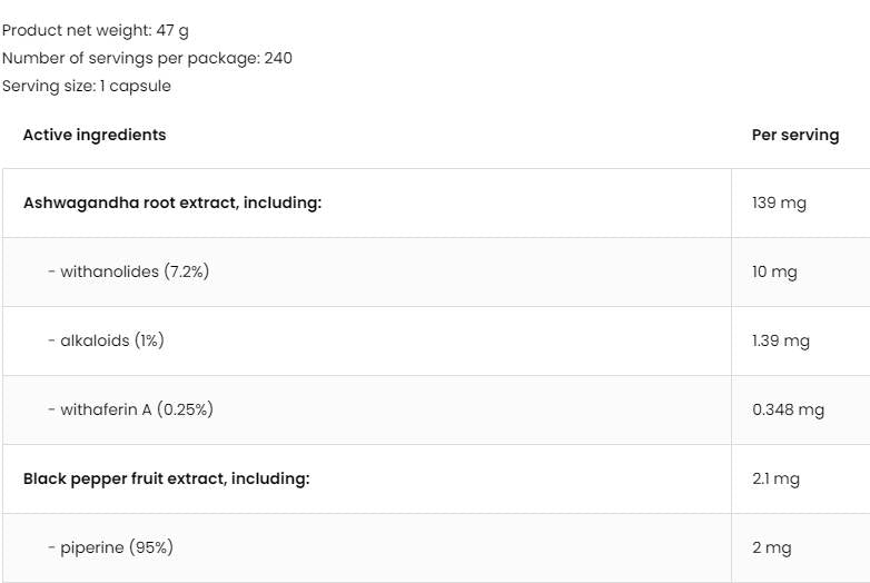 Ashwagandha gyökérkivonat 139 mg 240 kapszula