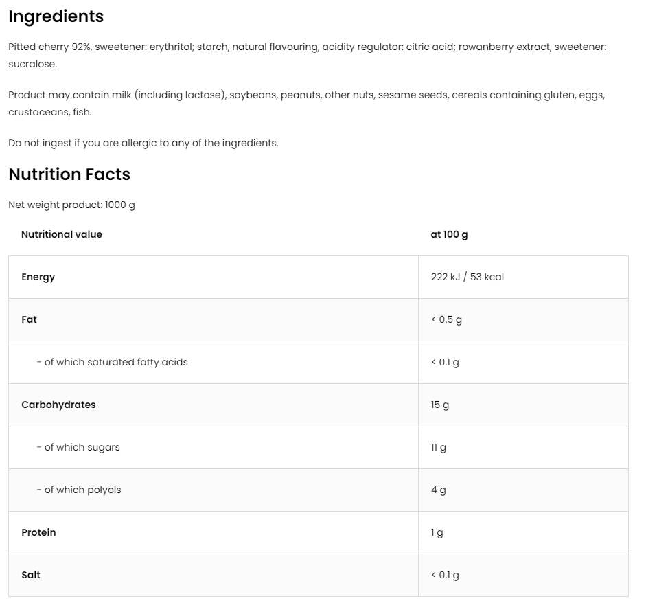 Tudományos tanulmányok kimutatták, hogy a cseresznyében található antocianintartalom hozzájárulhat a jobb alváshoz és a pulzusszám szabályozásához. Ezenkívül a cseresznyében található rost javítja az emésztést és segíthet a testsúlyszabályozásban, így a termék kiváló választás azok számára, akik egészséges életmódra törekszenek.