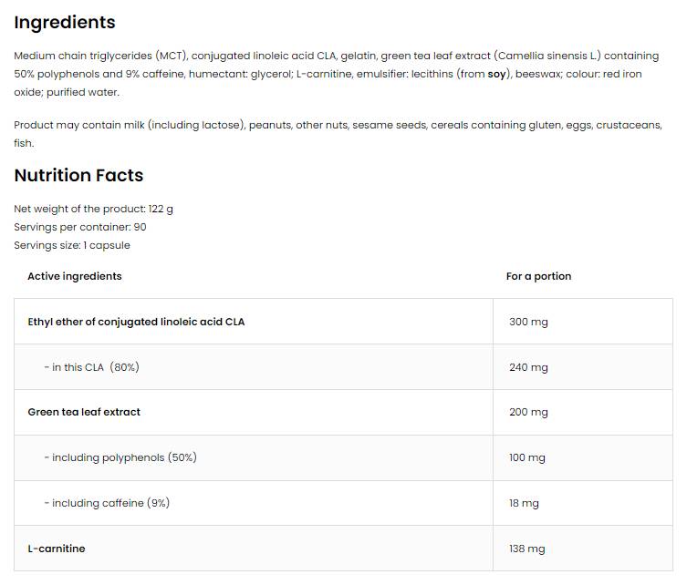 A termék három hatékony összetevőt – CLA-t, zöld teát és L-karnitint – egyesít, amelyek szinergikusan működnek az optimális eredmények elérése érdekében a fogyás és az energiaszint növelése terén. A CLA (konjugált linolsav) zsírégető hatásáról ismert, míg a zöld tea természetes antioxidáns, amely fokozhatja az anyagcserét és támogathatja a fogyási folyamatot. Az L-karnitin fontos szerepet játszik a zsírok mitokondriumokba történő szállításában is, ahol energiává alakulnak.