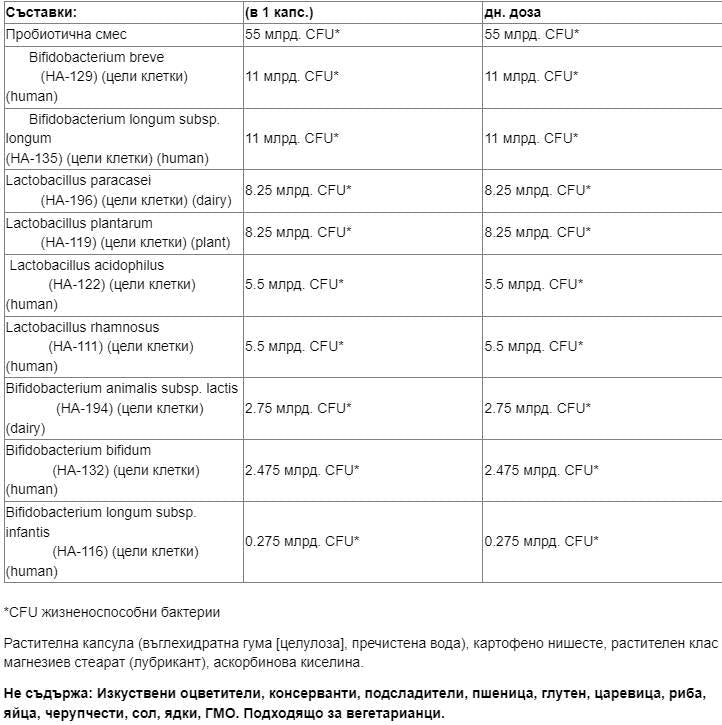 A Critical Care Probiotic 9 gyomor-stabil törzs szabadalmaztatott keveréke, 55 milliárd aktív sejt koncentrációjával, amelyek szinergiában működnek a maximális aktivitás és hatékonyság érdekében. A törzsek bifidobaktériumok és lactobacillusok, amelyek célzottan támogatják mind a vékony-, mind a vastagbelet. A komplex helyreállítja az antibiotikum-használat, a stressz, az étrend, az utazás és a gyomor-bélrendszeri rendellenességek miatt elvesztett hasznos baktériumokat. Ez a formula jelentős védelmet nyújt a bakteriális fertőzések, az élesztőgomba-túlszaporodás és az emésztési kellemetlenségek ellen. A szabadalmaztatott szinergikus keverék a következőket tartalmazza: Bifidobacterium breve, Bifidobacterium longum, Lactobacillus paracasei, Lactobacillus plantarum, Lactobacillus acidophilus, Lactobacillus rhamnosus, Bifidobacterium lactis, Bifidobacterium bifidum, Bifidobacterium infantis.