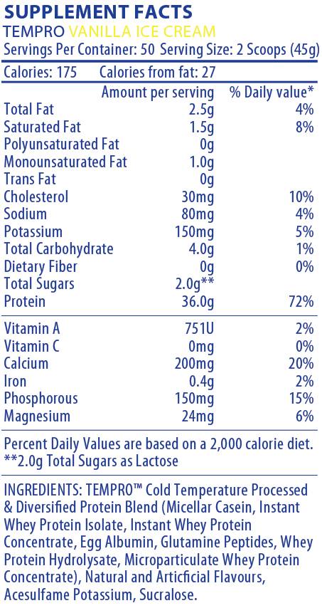 Tejsavó komplex Tempro a legmagasabb minőségű tejsavófehérje, adagonként több mint 24 g fehérjét tartalmaz!