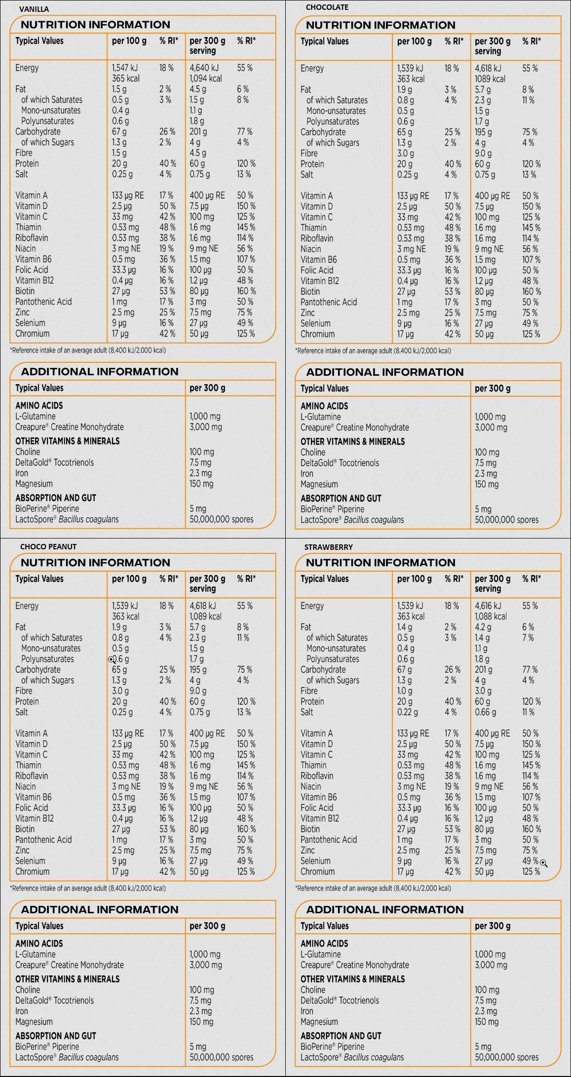 Az Instant Mass HEAVYWEIGHT formula adagonként 60 gramm BV Quattro® fehérjekomplexet, CarboBiotics™-ot – egy hozzáadott cukor nélküli szénhidrátkomplexet –, a világ bizonyítottan legtisztább kreatinjának – Creapure®-t, valamint hozzáadott cinket, magnéziumot és D3-vitamint tartalmaz.