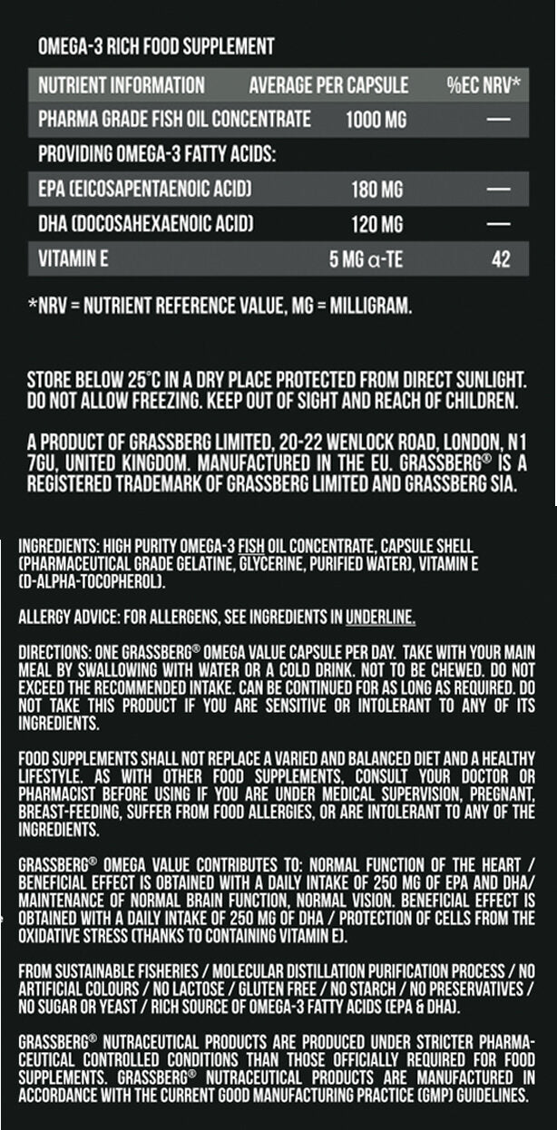 A Grassberg Omega-3 Value 1000mg kényelmes módot kínál a nélkülözhetetlen omega-3 zsírsavak - EPA és DHA - bevitelére.