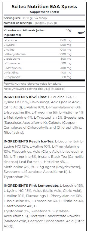 SCITEC Az EAA Xpress egy kiváló minőségű étrend-kiegészítő, amely olyan esszenciális aminosavak komplexét tartalmazza, amelyeket a szervezetünk nem tud önmagában előállítani. Minden nap, különösen intenzív fizikai aktivitás során, elengedhetetlen, hogy biztosítsuk ezen fontos tápanyagok megfelelő bevitelét. Egy adaggal SCITEC Az EAA Xpress-szel a napi ajánlott aminosavbevitel 50%-át fedezed, ami ideális az izomnövekedés és -regenerálódás támogatásához. Az esszenciális aminosavak kulcsszerepet játszanak a fehérjeszintézisben és segítenek az új izomszövet építésében.