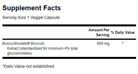 A brokkoli természetes antioxidáns fitonutrienseket, glükozinolátokat tartalmaz, amelyek hatékony védelmet nyújtanak a szívnek, a sejteknek és a szöveteknek az egész szervezetben a szabad gyökökkel szemben. Brokkolikivonatunk rendkívül koncentrált antioxidáns glükozinolátforrás. Tartalmaz egy korszerű érett brokkolikivonatot, a BroccoSinolátot, amelyet úgy szabványosítottak, hogy legalább 4% összes glükozinolátot tartalmazzon a garantált antioxidáns aktivitás érdekében minden kapszulában. Egyetlen más brokkoli-kiegészítő a piacon nem ér fel ennek a rendkívül hatékony kivonatnak a glükozinolát tartalmával.
