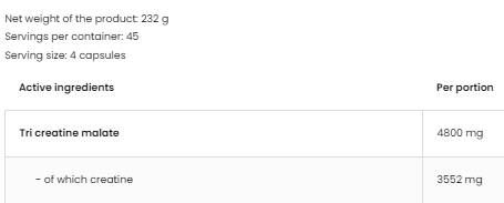 OstroVit Tri-kreatin-malát/TCM 1250 mg egy kiváló minőségű étrend-kiegészítő, amely kreatin-malát forrás. A következők kombinációja kreatin és almasav 1:3 arányban.