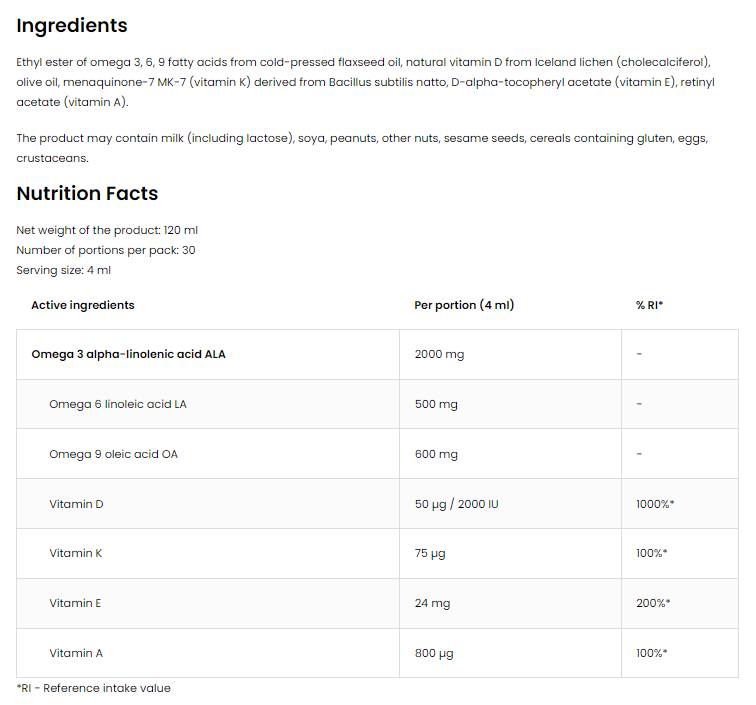 Az Omega 3-6-9 Liquid egy hatékony kombináció esszenciális zsírsavakkal és vitaminokkal, amelyek fontos szerepet játszanak az optimális egészség fenntartásában. Az A-, D-, E- és K-vitaminok elengedhetetlenek a szervezet megfelelő működéséhez, sejtek védelmét biztosítják és támogatják az immunrendszert. Az omega-zsírsavak kulcsszerepet játszanak az egészséges szív és agyműködés fenntartásában. Tudományos tanulmányok kimutatták, hogy az Omega 3-6-9 rendszeres bevitele csökkentheti a szív- és érrendszeri betegségek kockázatát és javíthatja a kognitív funkciókat.