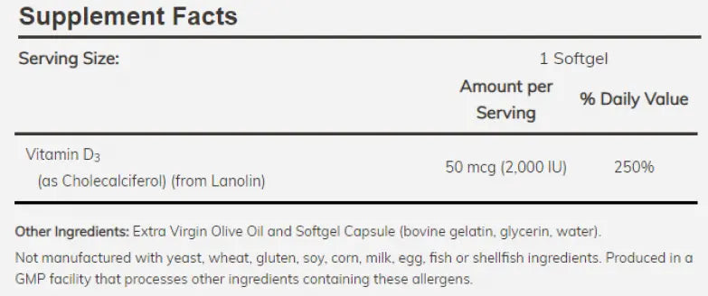 NOW D-3-vitamin/2000 NE egy magas D3-vitamin-tartalmú étrend-kiegészítő. Fontos résztvevője a szervezetben a kalciumszintézis folyamatának, ami rendkívül fontos a csontok egészsége és sűrűsége szempontjából.