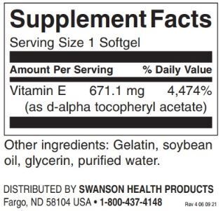 Ha többet keresel, mint pusztán egy vitamint a szíved egészségéért, próbáld ki Swanson E-vitamin. Az E-vitamin antioxidáns tulajdonságai segítenek megvédeni a szöveteket a szervezetben a szabad gyökök káros hatásaitól. Nagy hatékonyságú kapszuláink 671,1 mg d-alfa-tokoferol E-vitamint juttatnak a szervezetbe.