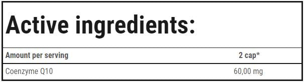 ÖSSZETÉTEL: maltodextrin; kapszulahéj (zselatin; színezék – titán-dioxid); koenzim Q10 (6,0%); csomósodást gátló anyag – zsírsavak magnéziumsói.