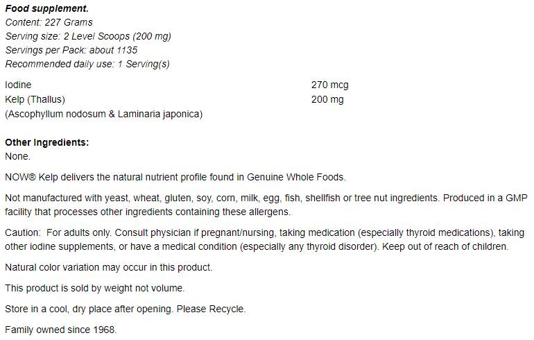 Fontos: A termék használata előtt konzultáljon orvosával, különösen, ha bármilyen egészségügyi problémája van, vagy gyógyszert szed. A termék ellenjavallt pajzsmirigy-túlműködésben vagy tenger gyümölcseire való túlérzékenységben szenvedők számára.
