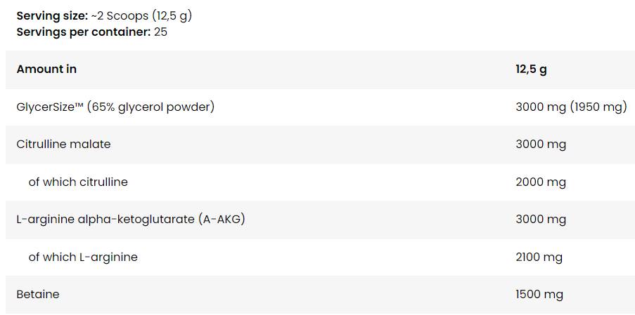 Útvonalterv: Oldjon fel 2 adagolókanál (12,5 g) port 250-300 ml vízben vagy egy 500 ml-es palackban, és fogyassza egyenletesen edzés közben a jobb tónus érdekében.