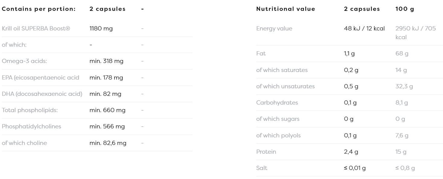 Klinikailag tesztelt krill olajat tartalmaz, gazdag omega-3 EPA-ban és DHA-ban, foszfolipidekben és magas biológiai hasznosulású kolinban.